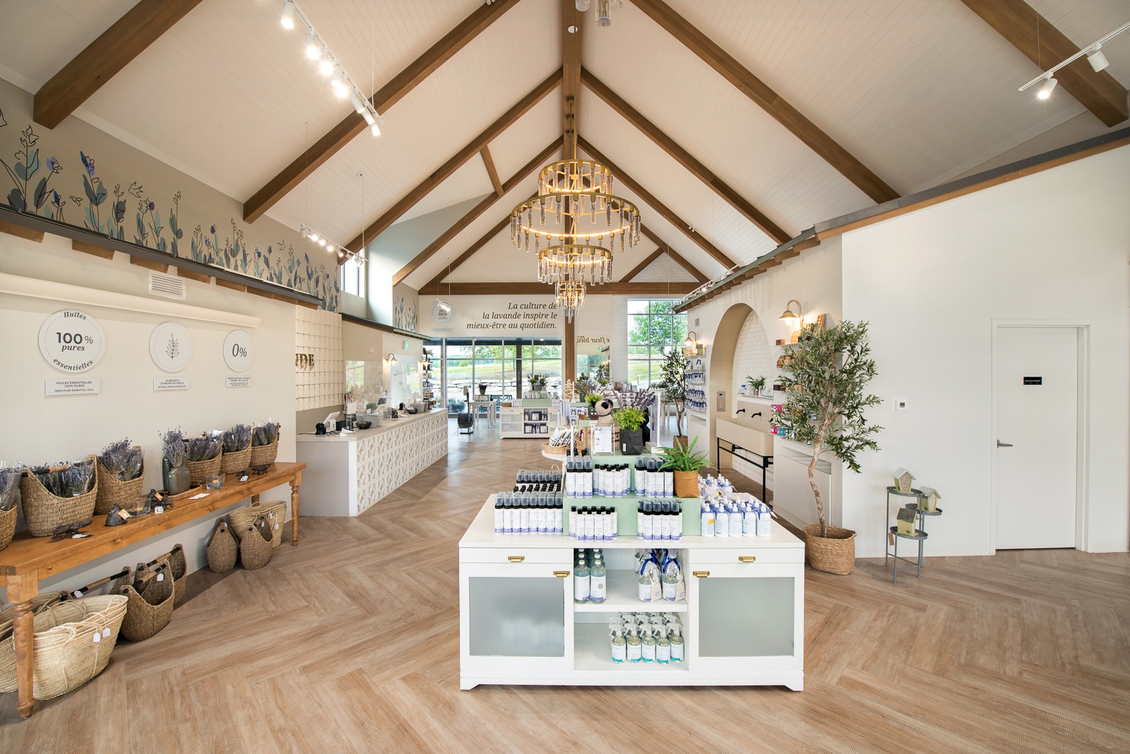 Le projet Bleu Lavande est un développement de nature commerciale visant à regrouper l’ensemble des activités de l’entreprise sur un même site. Le mandat comprenait la conception complète de l’aménagement du nouveau site, incluant l’implantation du bâtiment, les aires de stationnement, les surfaces en pavé uni, ainsi qu’un étang artificiel alimenté par les eaux de ruissellement.
