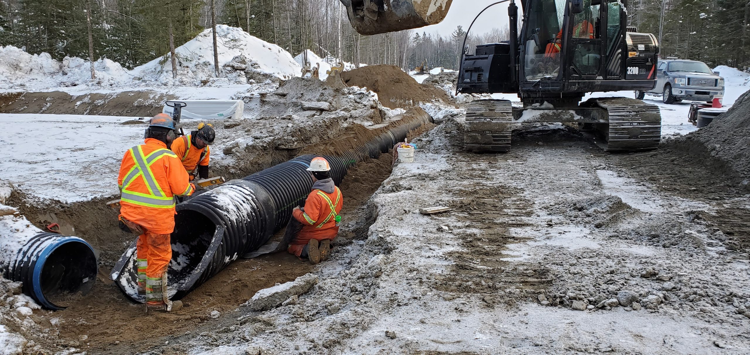 Le projet Immoterra est un développement résidentiel comprenant l’ouverture de trois nouvelles rues. Les travaux incluaient l’installation de conduites d’égout sanitaire réalisées en tranchée, ainsi que la mise en place d’une conduite de refoulement par forage directionnel.