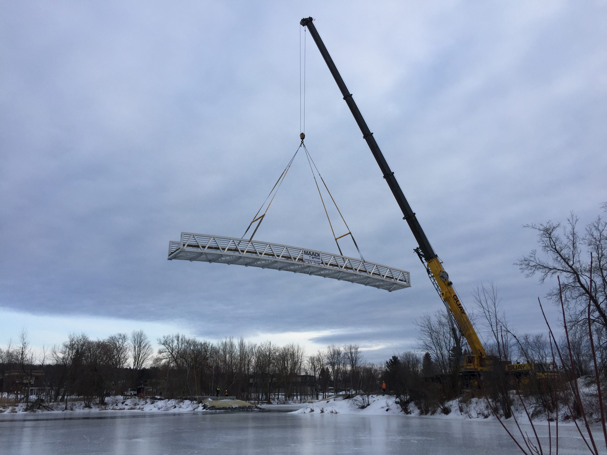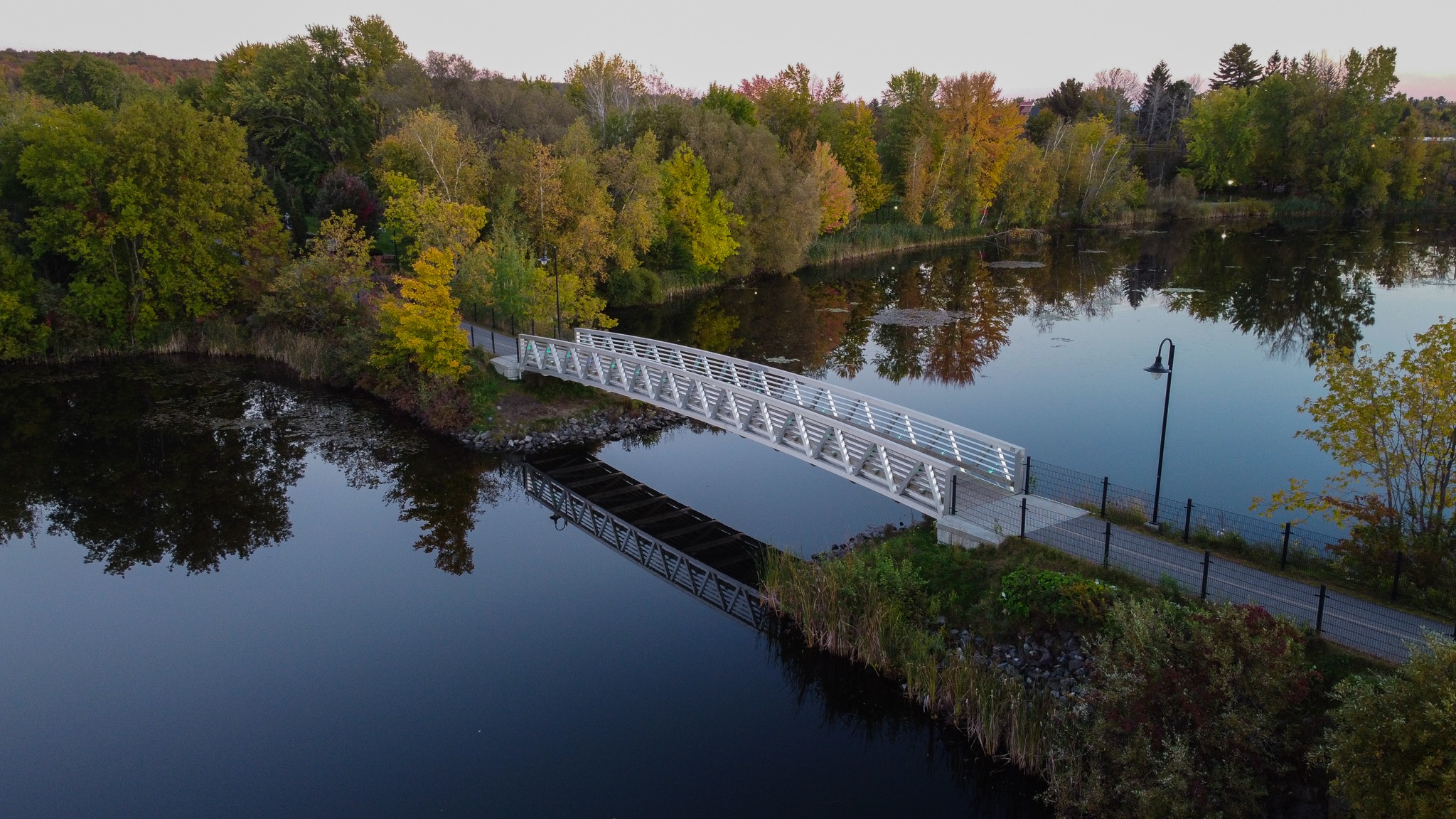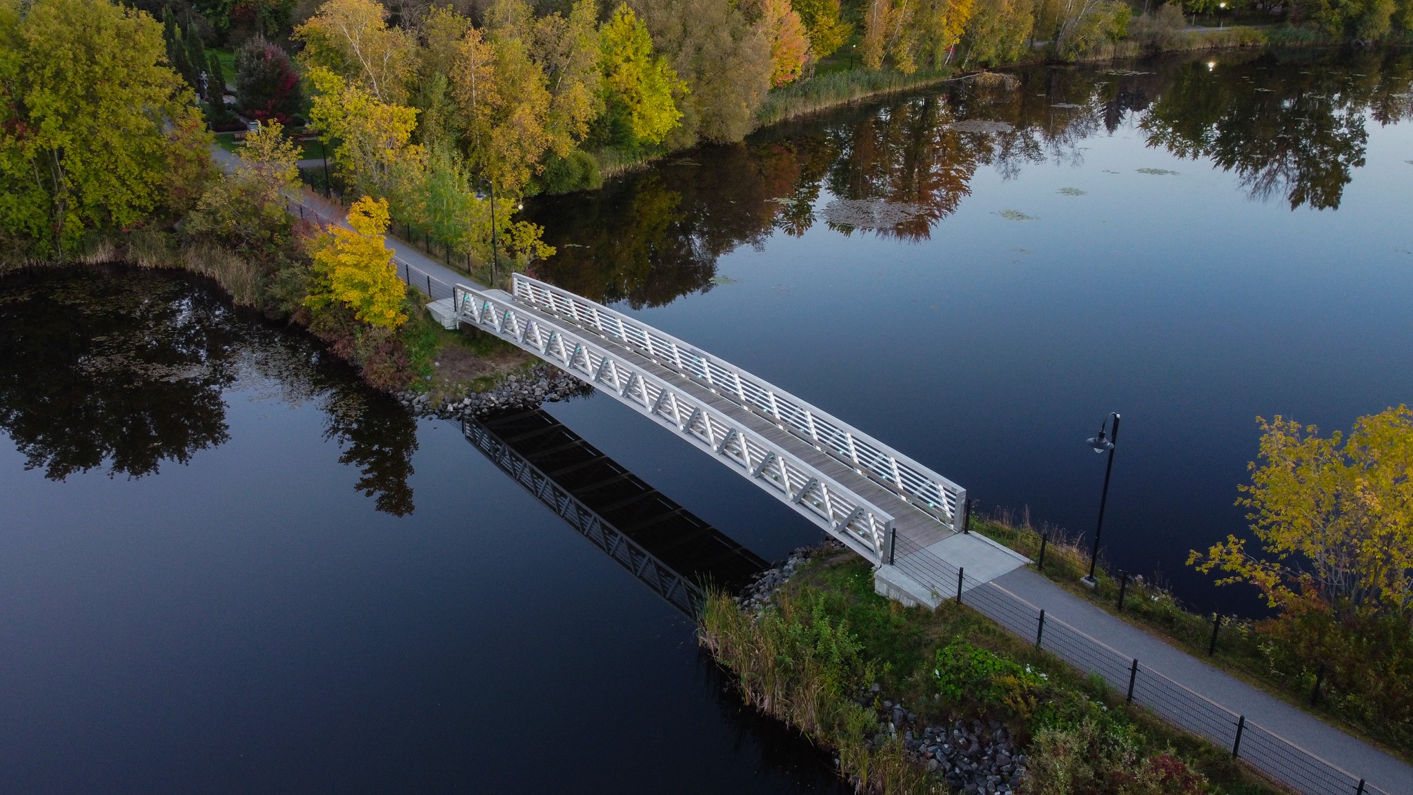 Le projet de la passerelle Stevens, à Waterloo, consistait en l’enlèvement complet du ponceau situé sous la piste cyclable enjambant le lac Waterloo. Les travaux de reconstruction comprenaient la démolition de la structure existante, la mise en place d’un nouvel ouvrage, le réaménagement des approches ainsi que la réfection complète de la piste cyclable.